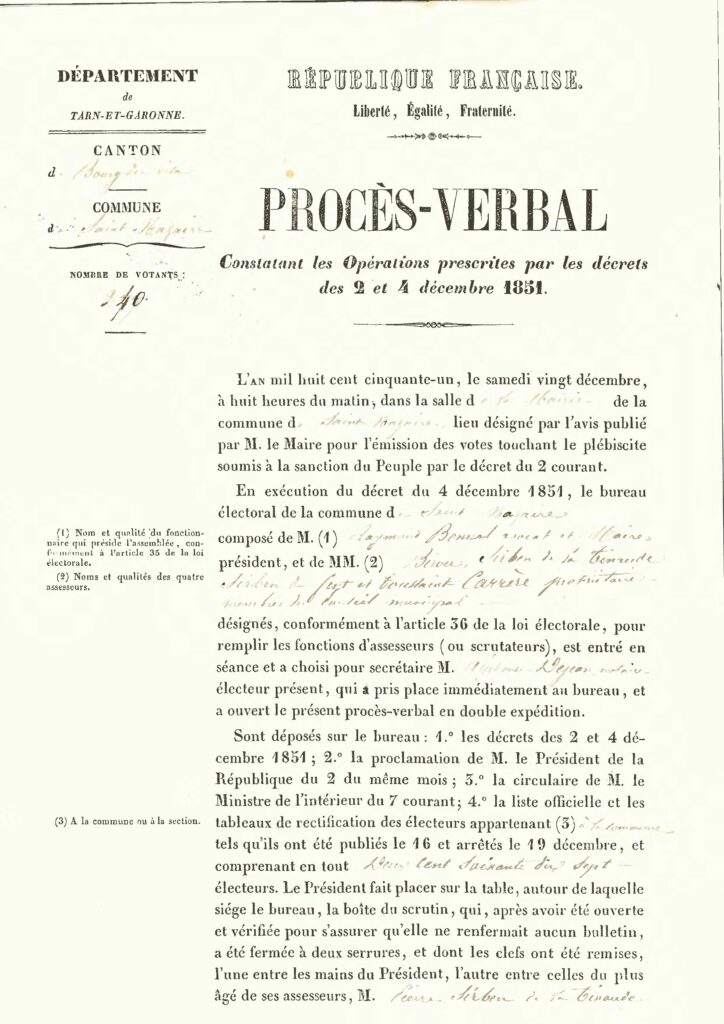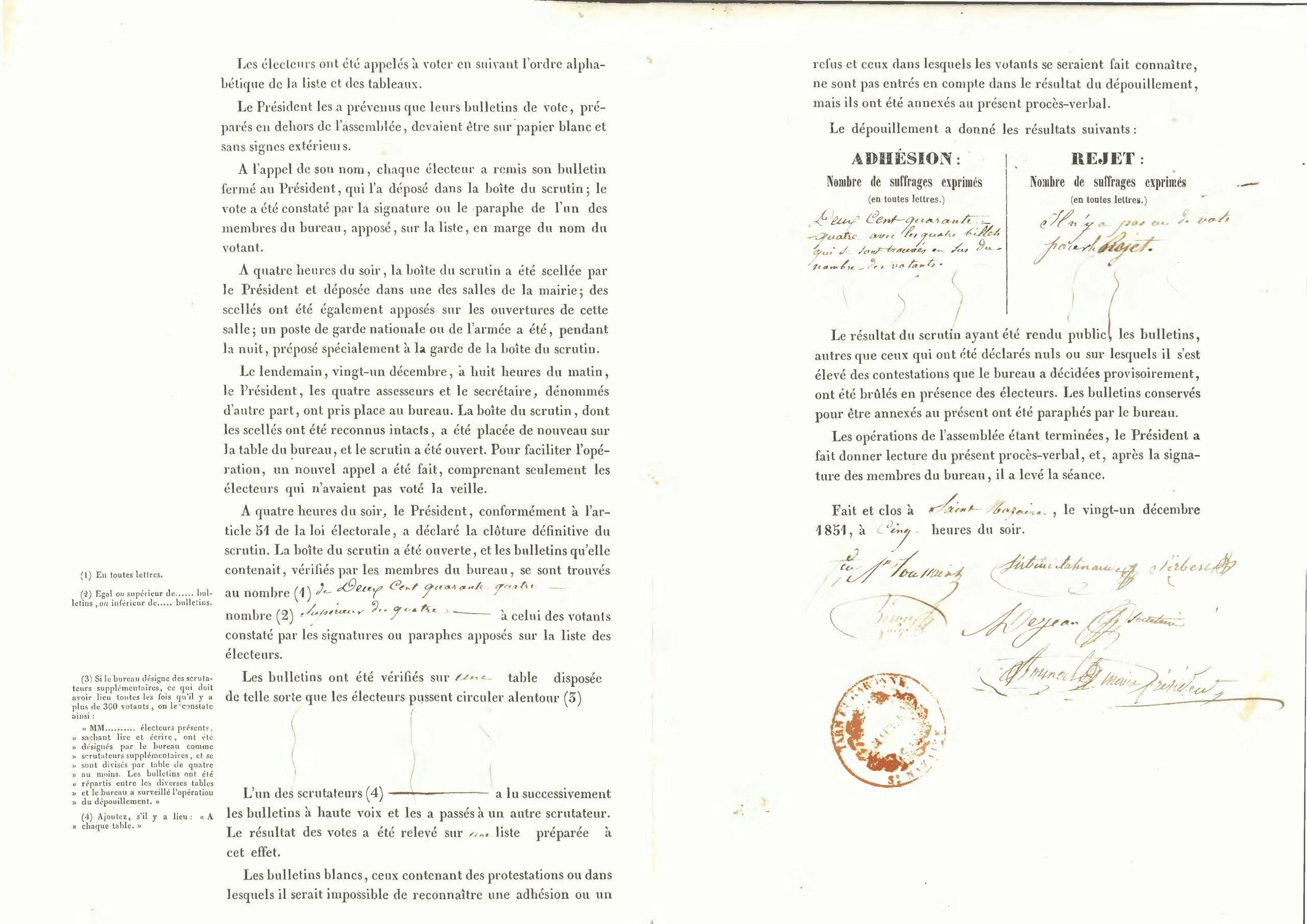 Procès-verbal du plébiscite des 20 et 21 décembre 1851